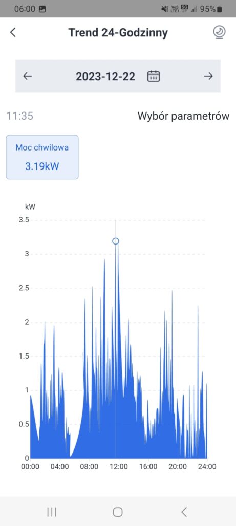 4. Przykładowy wykres produkcji prądu z turbiny wiatrowej: