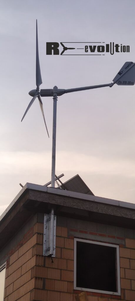Instalacja elektrowni wiatrowej jest dużo bardziej skomplikowana niż budowa elektrowni fotowoltaicznej. Panele PV montujemy na dachu, ziemi, podłączamy do inwertera i na tym koniec. Turbina wiatrowa wymaga przed wszystkim miejsca, które ma dobrą wietrzność. Zaistnienie takich warunków otwartych przestrzeni, tj. pola, bliskość zbiorników wodnych, wzniesienia. Bliskość budynków, lasów powoduje szarpanie mas powietrza. Dobra jakość wiatru to masa powietrza, która jest jak najbardziej jednostajna a nie szarpana i z różnych kierunków. Druga kwestia to maszt, który musi być absolutnie sztywny. Turbina 3kw Re-evolution to największa turbina, którą można montować na budynku i montuje się ją na maszcie mocowanym do budynku (solidny komin, ściana szczytowa zbrojona lub wpuszcza w budynek montując przy kalenicy). Innym sposobem montażu tej turbiny w ramach struktury budynku jest osadowienie słupa żerdziowego energetycznego przy budynku. Słup otrzymuje od nas „przejściówkę – czapeczkę” pomiędzy słupem a turbiną. Wygląd, przekroje masztów / przejściówek znajdą Państwo na naszej stronie www. Słup wykonany jest ze stali zbrojonej i betonu. Proponowany przez nas maszt doczepny z 2 warstw stali o łącznej grubości 9mm. Gdy już to wszystko mamy można posadowić turbinę i podłączyć do kontrolera a następnie inwertera. Inwerter to kolejna ważna kwestia. Z tym zagadnieniem wiążą się tematy takiej jak, szybkość załączania się bramki MPPT, napięcie przy jakim załącza się ta bramka, oraz prawidłowo zaimplementowana krzywa mocy dla danej turbiny. Spięcie tych wszystkich spraw pozwoli się cieszyć prądem od października do marca, kiedy to turbina wytwarza 70% energii w ciągu roku.